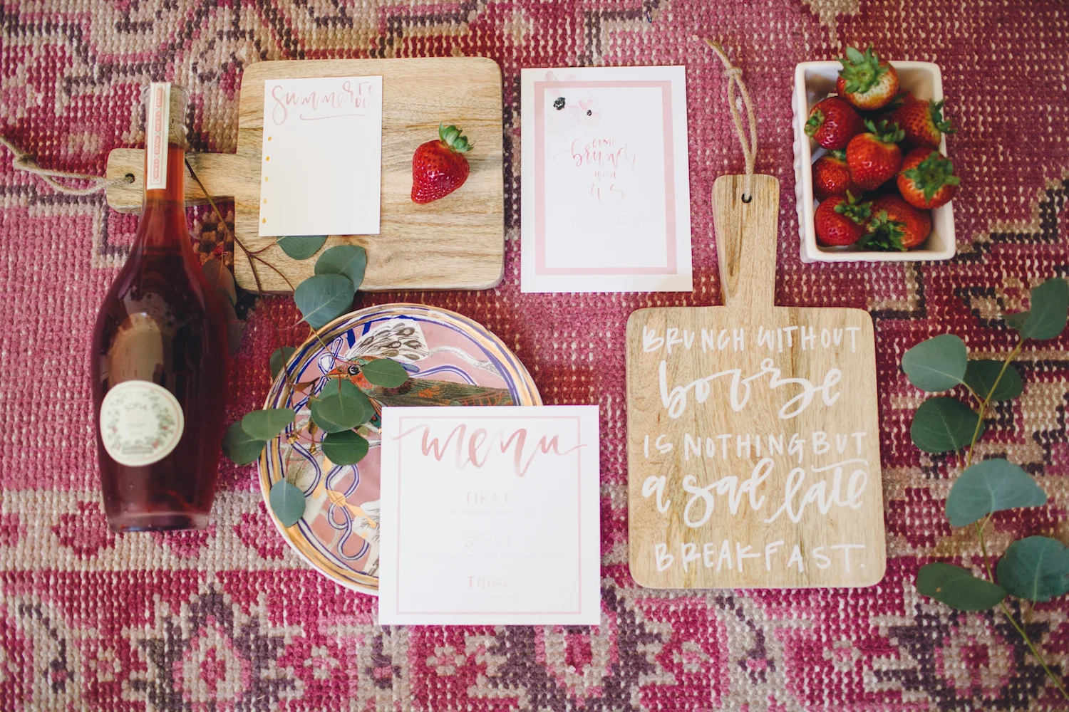 Obviously one of my favorite parts of planning events is getting to work in a touch of calligraphy. A few entertaining quotes, a good printable, and maybe an invite always complete the look of the celebration. For the last summer brunch I hosted, it was hard not to keep going and going with the paper goods. With the bohemian inspiration and muted pops of summer brights, I could have designed and lettered plenty more. But, I narrowed it down and have a curated selection of my favorite pieces that made the cut!